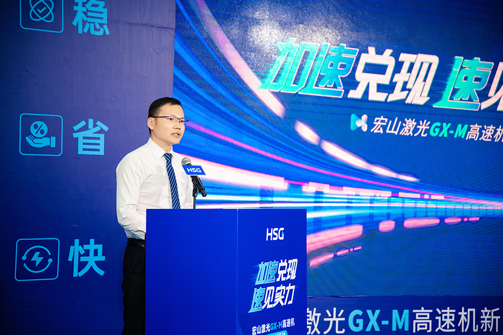 活動(dòng)伊始,宏山激光業(yè)務(wù)副總裁Liam Zhang發(fā)表致辭指出:“GX-M不是一臺(tái)單純的設(shè)備,而是一種結(jié)果交付的承諾:跑得動(dòng)、跑得穩(wěn)、跑得值。”他表示,宏山激光始終堅(jiān)持以客戶為中心、以結(jié)果為導(dǎo)向,GX-M自立項(xiàng)之初便錨定“更快、更穩(wěn)、更省”的研發(fā)目標(biāo),聚焦客戶在加工效率、穩(wěn)定性與成本控制等核心痛點(diǎn),致力于將真正可用、可復(fù)制、可創(chuàng)造效益的解決方案落地市場(chǎng)。