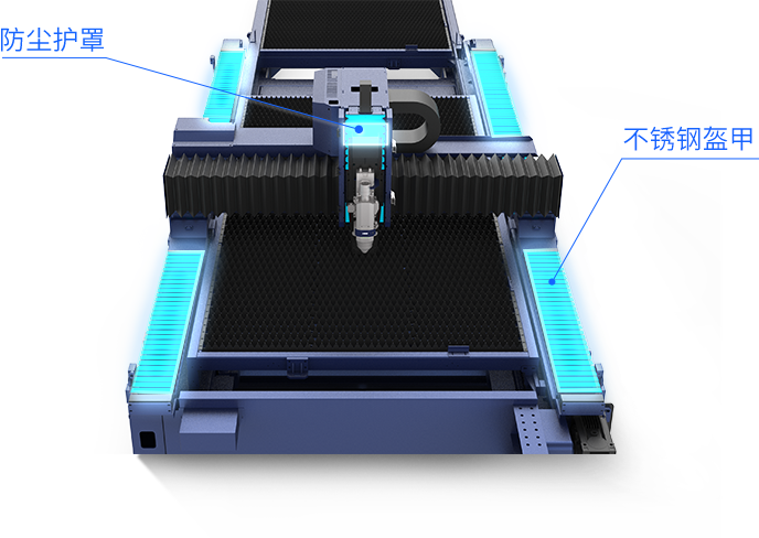 橫梁雙側防塵護罩增加不銹鋼盔甲,