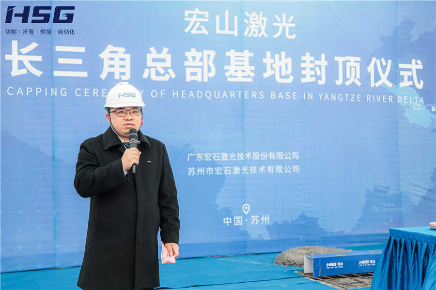 在聽(tīng)取基地建設(shè)進(jìn)度匯報(bào)后,宏山激光董事俞宏標(biāo)先生為此次活動(dòng)發(fā)表致辭,俞總對(duì)多方施工單位表達(dá)了感謝,并表示:長(zhǎng)三角總部基地的建設(shè),是宏山激光國(guó)內(nèi)乃至全球布局發(fā)展的重要一環(huán),是宏山激光增資擴(kuò)產(chǎn)、擴(kuò)大企業(yè)實(shí)力、完善戰(zhàn)略布局的重要步驟。未來(lái),長(zhǎng)三角總部基地將扎根蘇州,面向華東、華北地區(qū),為用戶(hù)提供“家門(mén)口”的激光智能裝備服務(wù)。